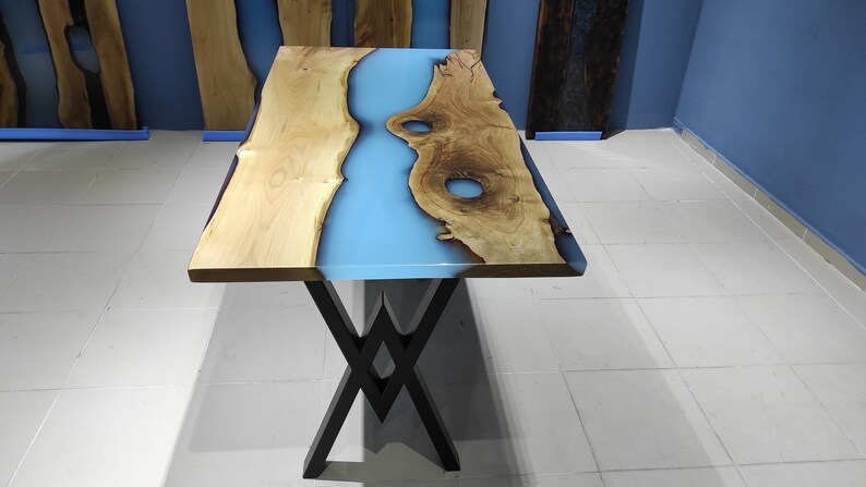 Epoxy Resin Walnut Table:
